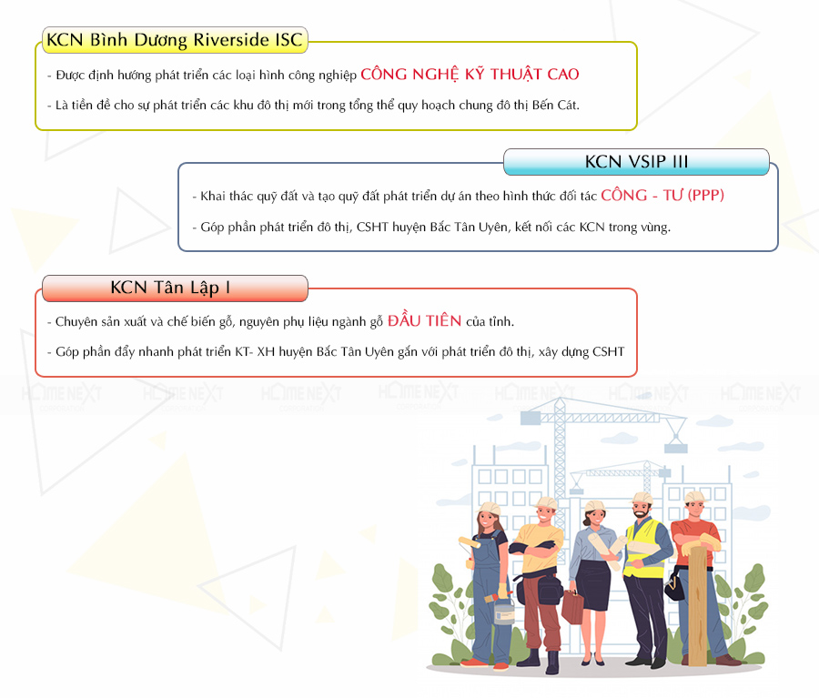 Những năm gần đây, các khu công nghiệp tại TP. Hồ Chí Minh đang có xu hướng dịch chuyển về phía Bắc khi các khu công nghiệp tại Dĩ An, Thuận An đều đã lấp đầy. Trong đó, nhộn nhịp nhất là ở Bắc Tân Uyên, Nam Tân Uyên, Bàu Bàng…
